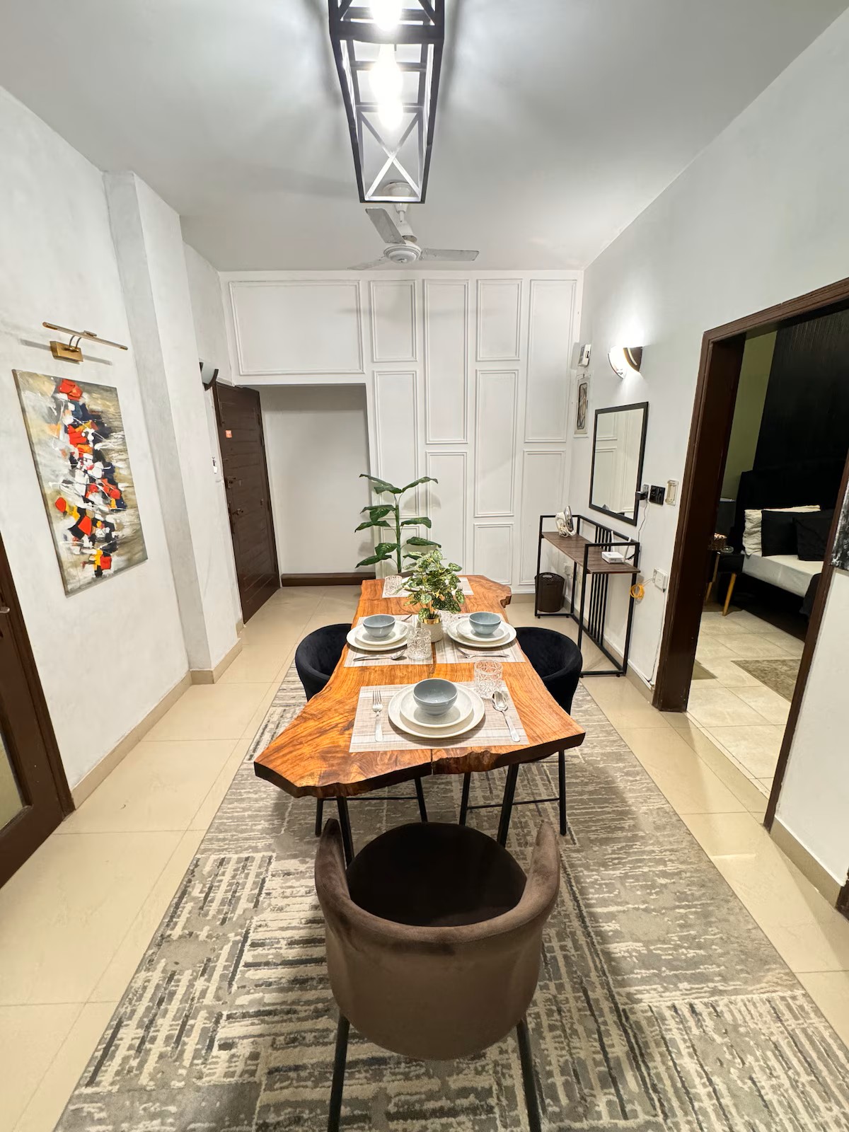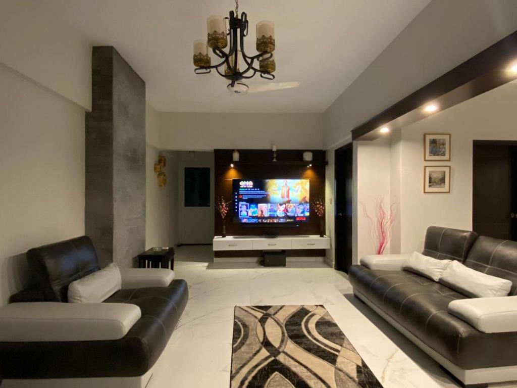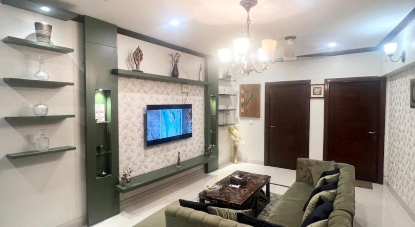 This property offers access to a balcony, free private parking, and free Wifi. The accommodation features an elevator and full-day security for guests. Featuring a terrace and city views, the spacious apartment includes 3 bedrooms, a living room, cable TV, an equipped kitchen, and 4 bathrooms with a shower. Towels and bed linen are available in the apartment. For added privacy, the accommodation has a private entrance and soundproofing. The nearest airport is Jinnah International Airport, 9.3 miles from 3 Bed DD Luxury Apt SMCHS.